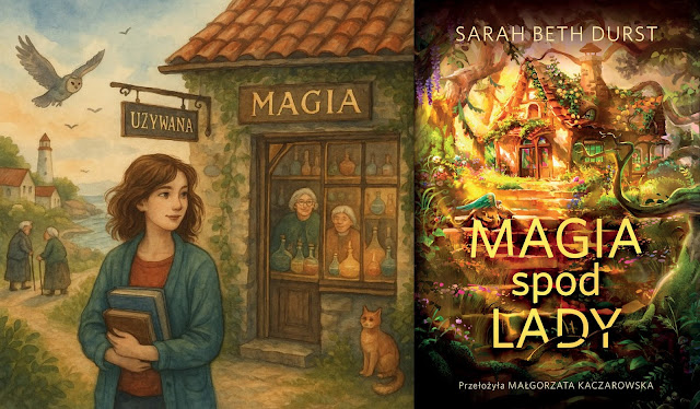 Powiem tak - ja po prostu miałam ochotę na coś lekkiego, przytulnego, bez dramatycznych bitew o losy świata ani mrocznych tajemnic. Pragnęłam przeczytać ciepłe, cozy fantasy, które otula jak miękka chmurka. Chciałam książki, przy której można się zrelaksować, odpocząć i zatopić w świecie pełnym uroku, a nie napięcia. I właśnie to dostałam. Magia spod lady Sarah Beth Durst okazała się dokładnie tym, czego potrzebowałam – spokojną, urokliwą historią, która bardziej kołysze niż porywa, ale dzięki temu świetnie sprawdza się jako lektura na leniwe popołudnie.
